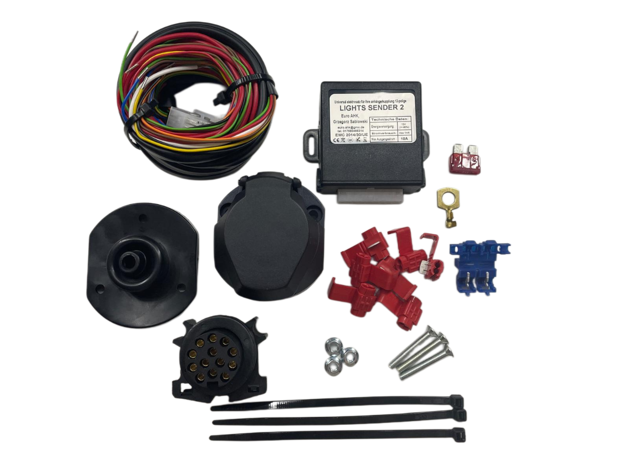 Sicher, zuverlässig und vielseitig: Unser universeller 13-poliger Elektrosatz ermöglicht die einfache und professionelle Verbindung von Pkw und Anhänger oder Trailer. Er ist kompatibel mit den gängigsten Fahrzeugmodellen und sorgt für eine stabile Stromversorgung aller Anhängerleuchten – Bremslichter, Blinker, Rückfahr- und Nebelschlussleuchten.
